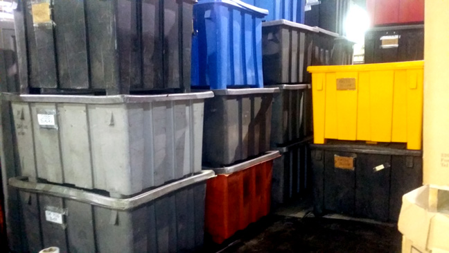 The Bulk Storage Containers can stack with lid for easy warehouse storage.